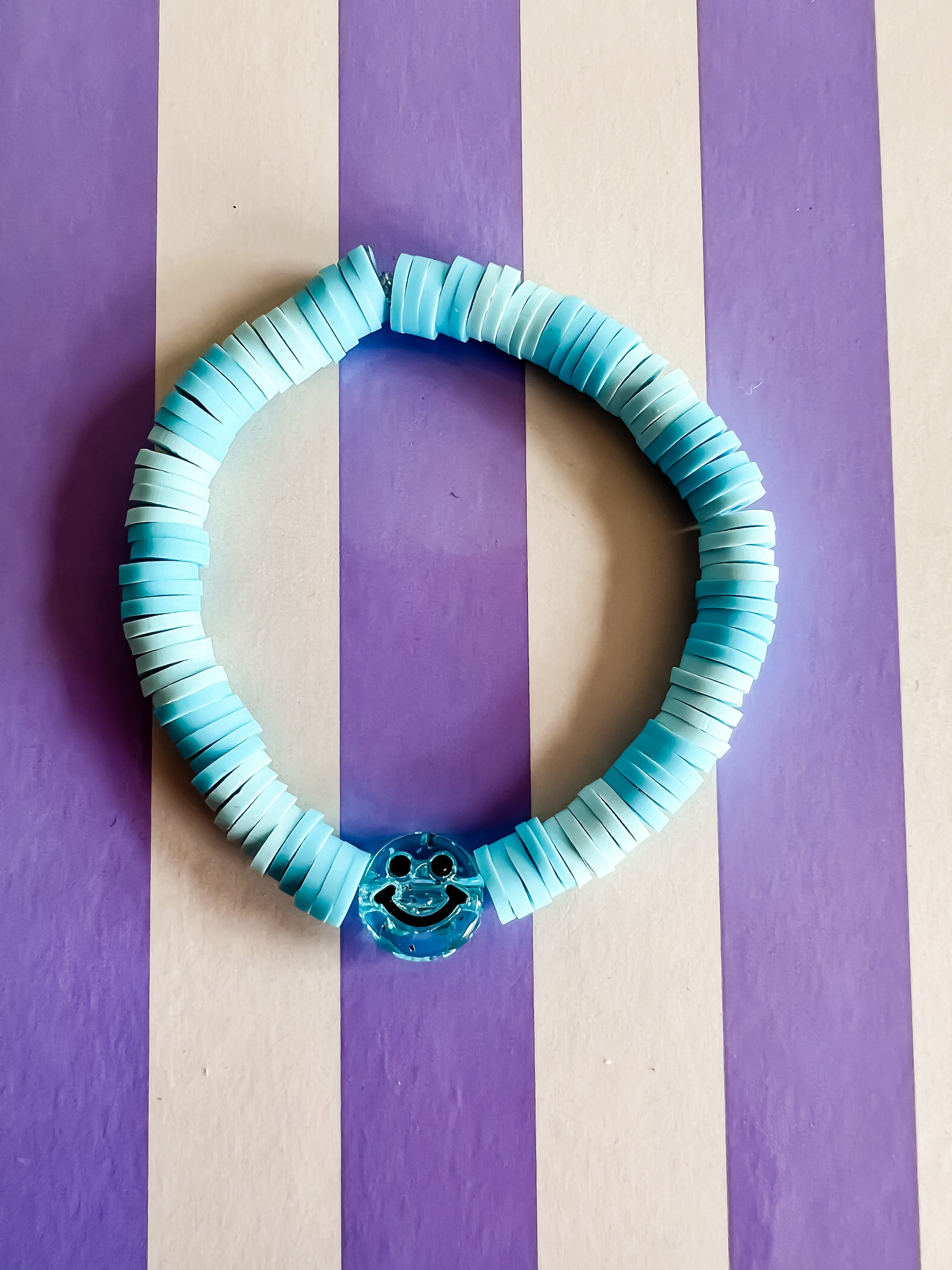 Lenn Armband – Lichtblauw en Wit met Blauwe Smiley Bedel